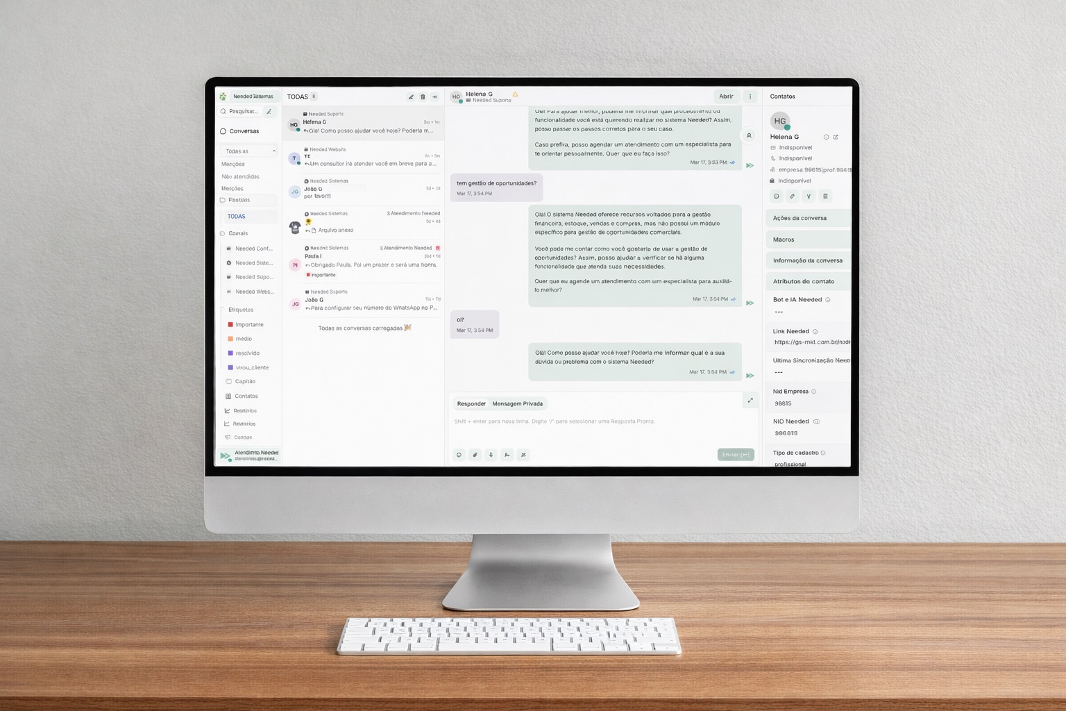 Conte com seu próprio agente de atendimento com inteligência artificial, com WhatsApp oficial. Oferecemos um sistema completo de atendimento integrado ao CRM do portal Needed. Atenda melhor, 24 horas por dia, com eficiência e praticidade.